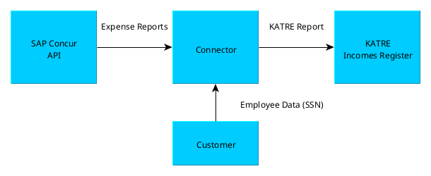 Nordic Concur Connector KATRE integration fetches paid expense reports from SAP Concur and reports the tax free benefits to KATRE according to the rules you have defined.