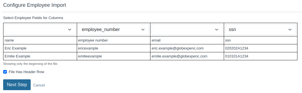If your company does not have employees Social Security Numbers in LDAP, you can import them into the application from a spreadsheet.