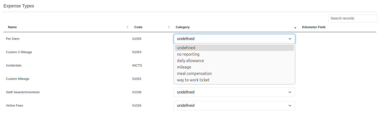 Then you need to categorize the SAP Concur expense types so that our app knows which expenses need to be reported to KATRE. When an expense report contains any expenses whose expense type is not categorized, processing that expense report is halted until all the used expense types are categorized.
