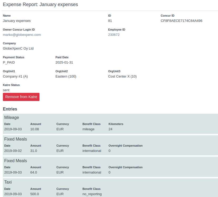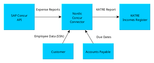 Nordic Concur Connector KATRE integration fetches paid expense reports from SAP Concur and reports the tax free benefits to KATRE according to the rules you have defined.