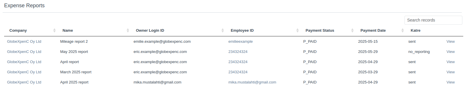 Report View shows key fields from the expense report and all the expense entries with their expense type categorization. From the report view you can pull the report back from KATRE, if the expense report had incorrect data on it.